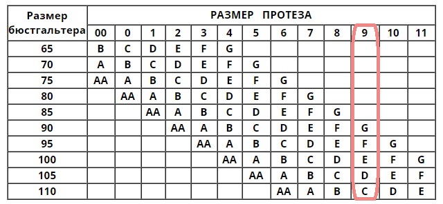 - Размер протеза
