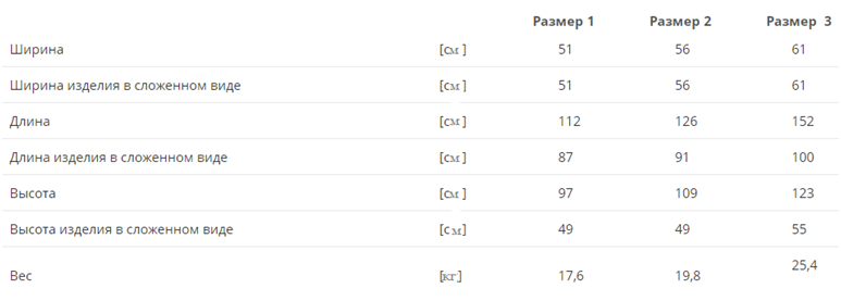 - Хранение: чехол для разложенной коляски, органайзер, чехол для переноски коляски в сложенном положении, сумка.