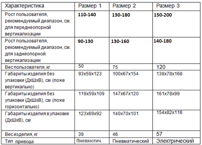 - регулировка высоты, глубины и угла наклона столика для заднеопорной вертикализации;